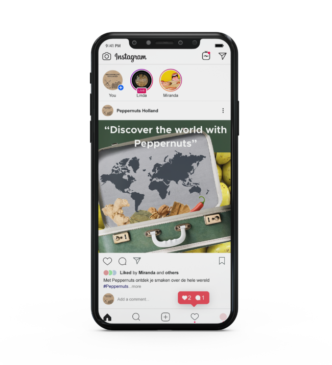 Ontdekken vanaf de bank: Door het te associëren met “samen ontdekken vanaf de bank” komt de pepernoot en de pepernoot smaak los van Sinterklaas en zien mensen het niet meer als een seizoensgebonden product. Samen ontdekken vanaf de bank draagt ook nog bij aan SDG 13 Klimaatactie. Door de smaken samen te ontdekken vanaf de bank stimuleert Peppernuts minder CO2 uitstoot, want door te ontdekken vanaf de bank scheelt weer reisverkeer en dat scheelt weer CO2 uitstoot.