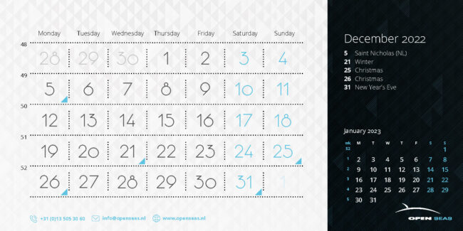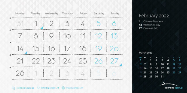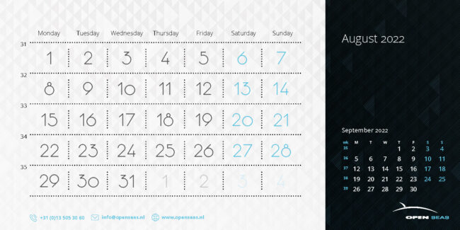 Elk jaar word er door Zuid Creatives een bureau kalender gemaakt voor het bedrijf Open Seas. Dit jaar was de eer aan mij om hier een nieuw jasje aan te geven. Het uitgangspunt is het thema Fish boxing geweest. Dit is de werkwijze van het bedrijf.